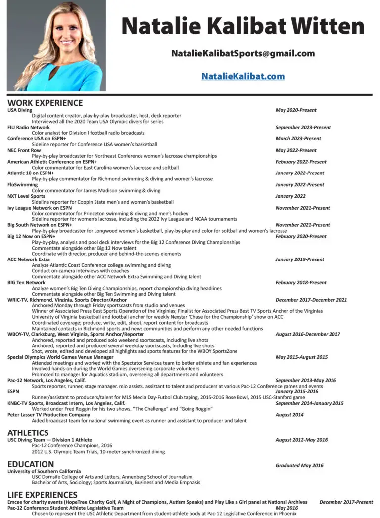 Natalie Kalibat is a TV anchor, commentator, host and emcee who is currently doing live sports broadcasting on digital platforms, including ESPN.